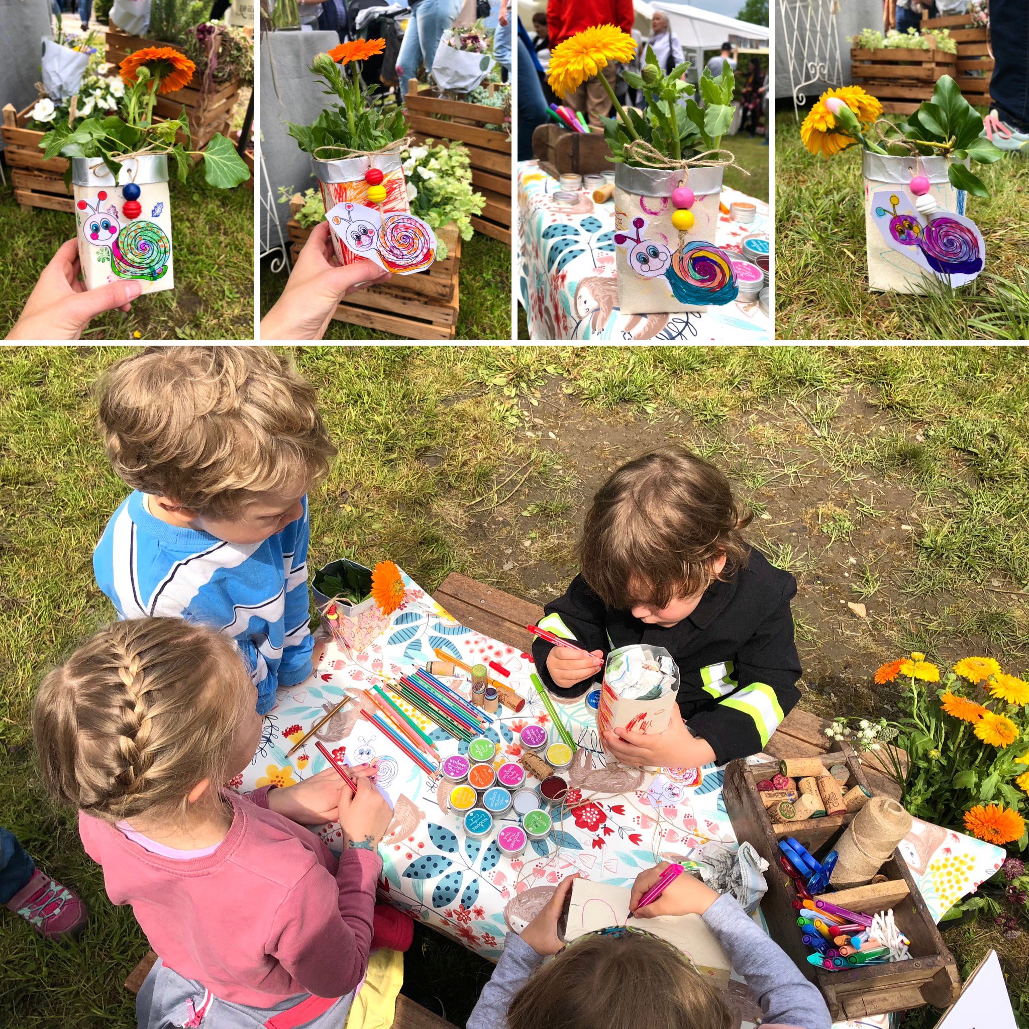 Verschiedene Posten für die Kids. Dosenwerfen, Zielwurfwand, Kinderschminken (Andrea), Basteln (ich) etc.