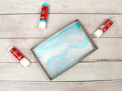 4. Nimm einen kleinen Schwamm und tupfe die Bastelfarbe auf einen Kartondeckel.