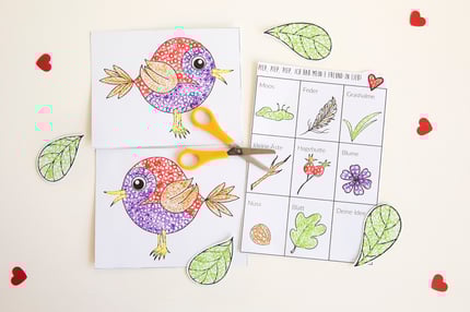 All das sucht ein Vogel jeweils für sein Vogelnestchen. Wer findet zuerst alles?