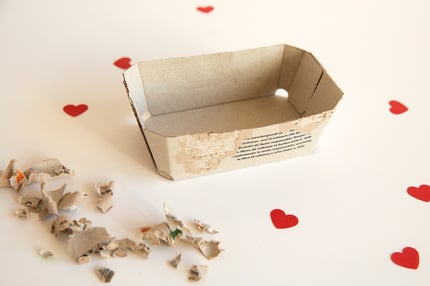 Bei Kartonschachteli die äusserste Schicht (hier der bedruckte Teil) weg lösen, bis kein Aufdruck mehr ersichtlich ist.