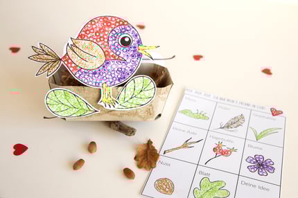 Daheim angekommen, kannst du dein Gesammeltes ins Vogelnestli legen.