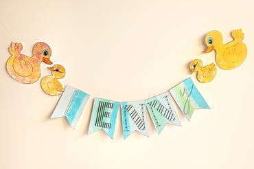 Danach fädelst du die Entchen ein und danach die Wimpel.