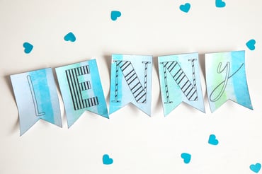 Hänge deine Wimpelkette auf. An die Wand, an eine Türe oder wo auch immer.