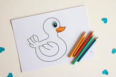 Male den Entenschnabel und die Augen mit Buntstiften aus.