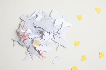 Papierschnipsel mit Leim > in eine weitere Schüssel geben