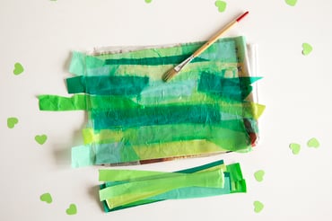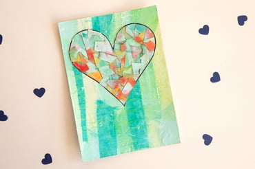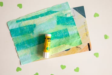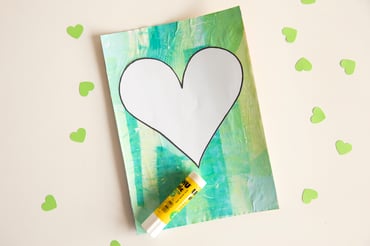Klebe das Herz mit einem Leimstift auf den gestreiften Hintergrund.